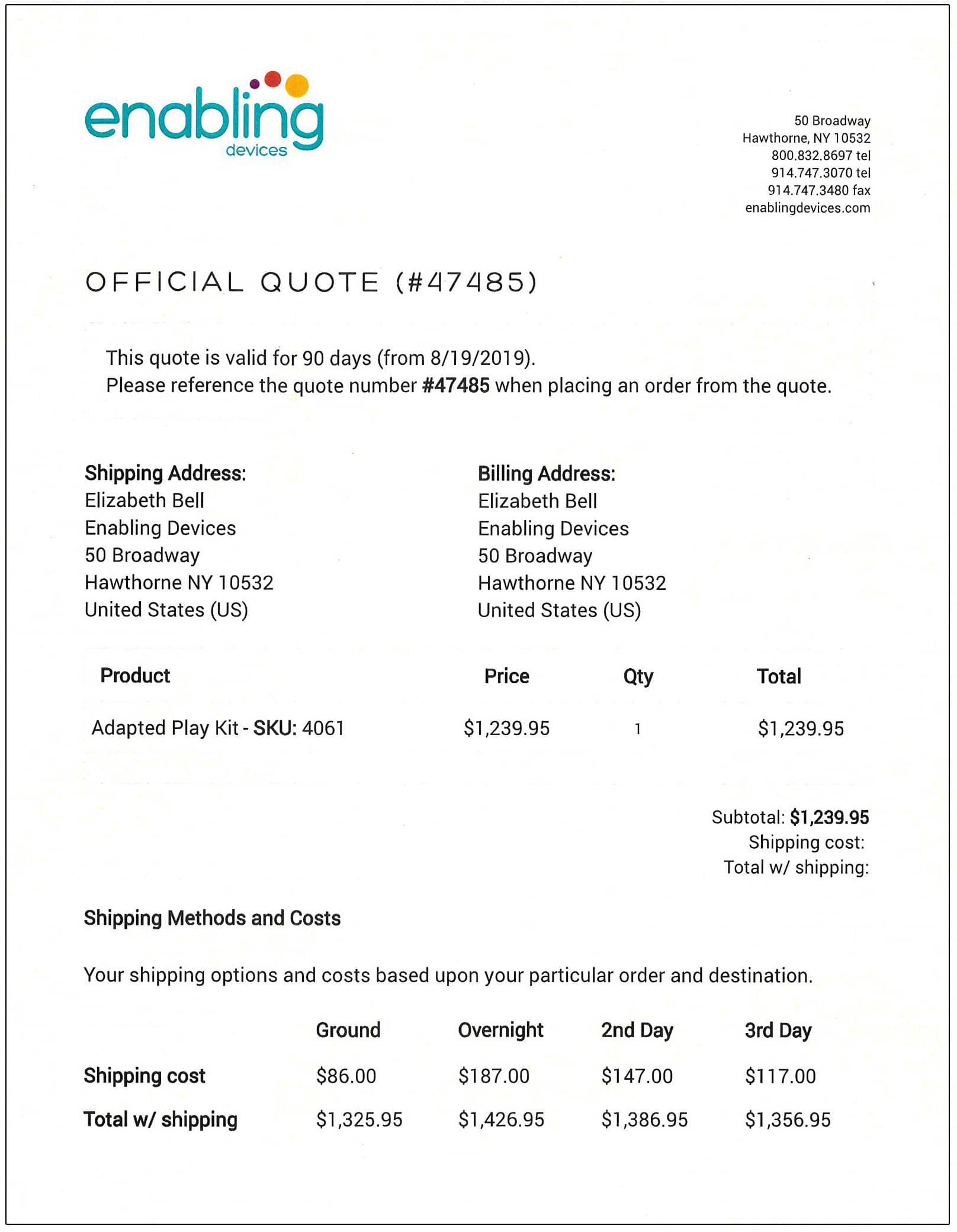 Using Quotes is great when you need to get approval for your order from a manager, committee, or other stakeholder first before placing an order. Quotes include any applicable taxes and actual shipping costs as well, giving your management a complete accounting of the planned order.
