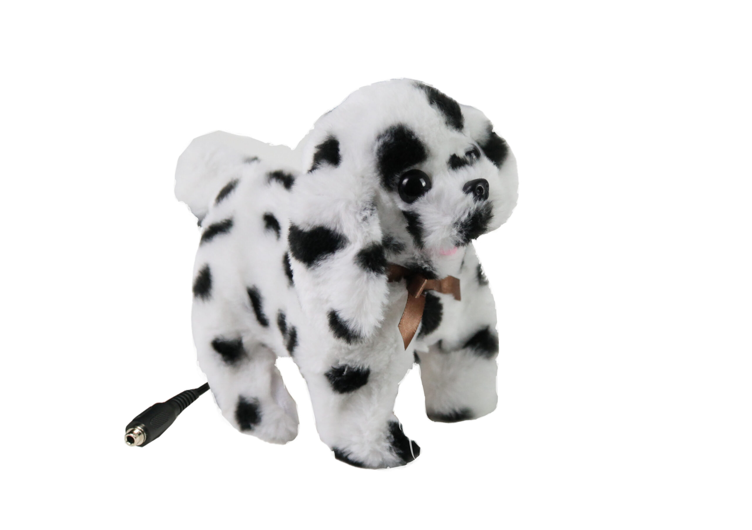 This adorable, lifelike little pup barks, wags his tail and swings his head when his human playmate activates an external capability switch (not included). A great cause and effect experience.