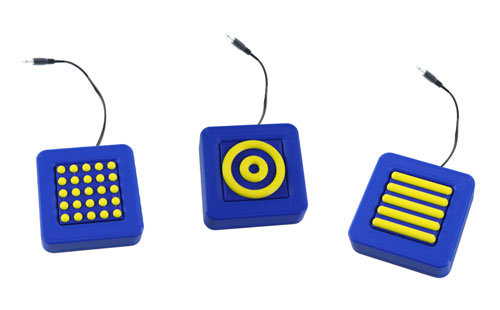 This set of three tactile switches are great for the visually impaired as well as sensory seekers. The 2″ x 2″ activation surface features three patterns: dots, lines and circles.