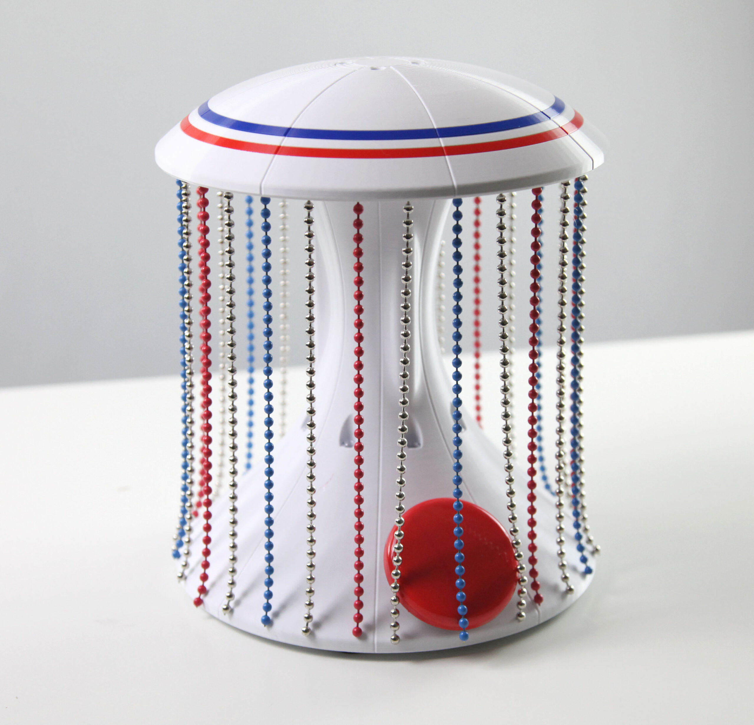 The next best thing to an amusement park! Just press its red gumball switch to make this carousel twirl, taking its colorful bead chains—so cool to the touch— along for the ride.